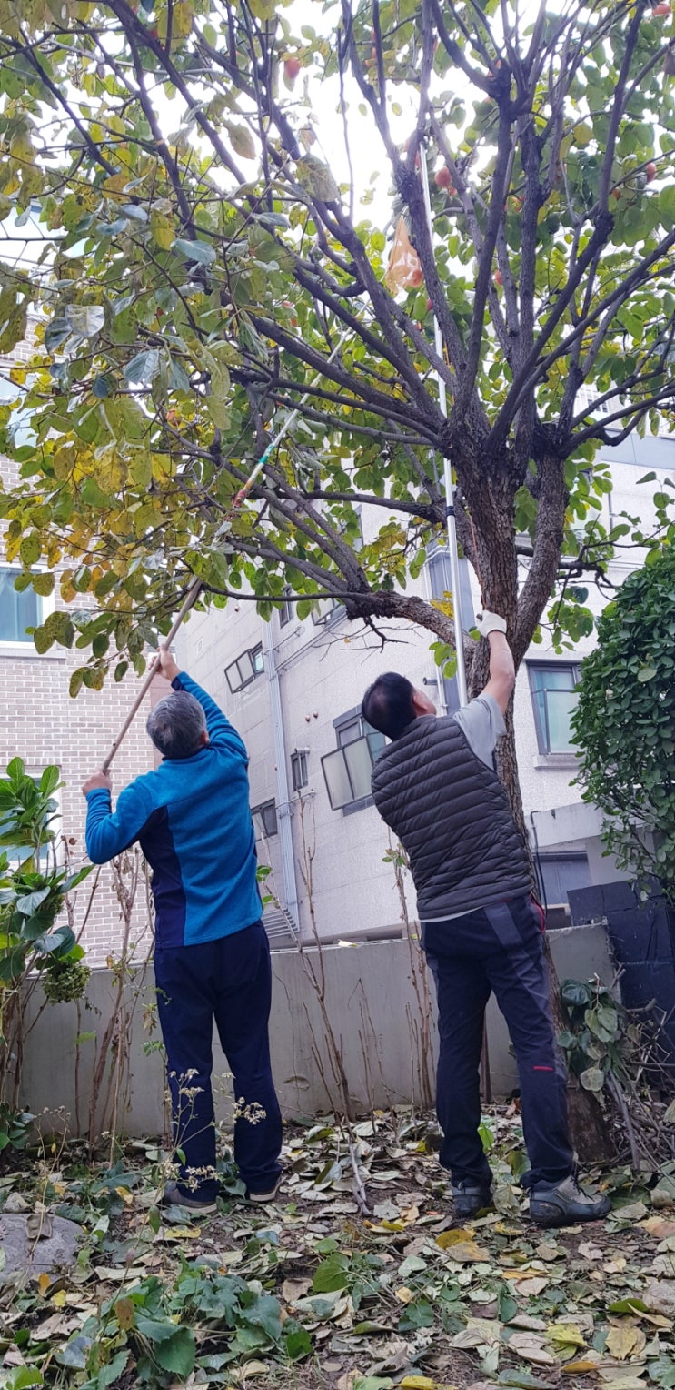 사위들은 감을 따고 딸들은 주워 나르고 아버진 감을 닦고~~ 김장이 끝난 후 작은 박스에 담은 대봉 한상자...