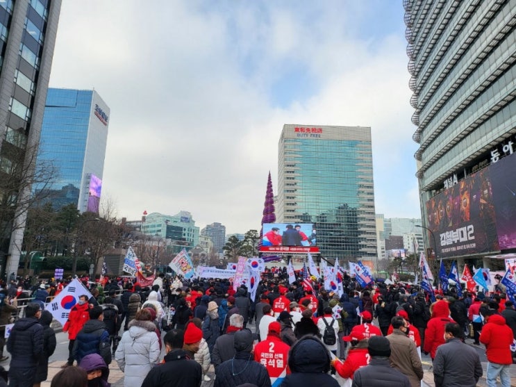 아침 8시, 강추위로 바람이 매서웠지만 추위도 잊은 뜨거운 열정의 청계광장에는 붉은색 동백꽃에 매화가 ...