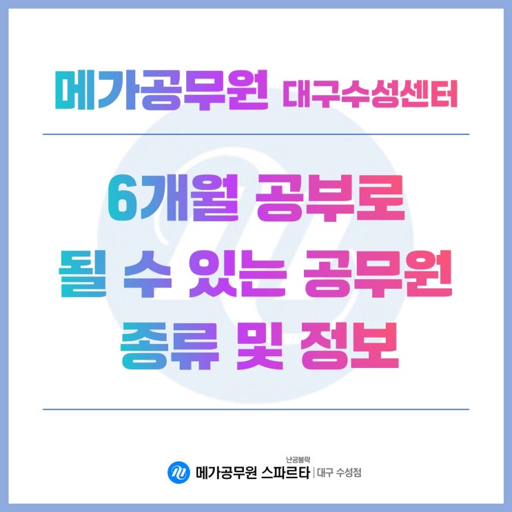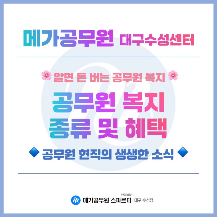 안녕하세요. [메가공무원 스파르타 대구수성센터] 입니다!? 오늘은 대한민국 공무원이라고 하면 어떤 복...
