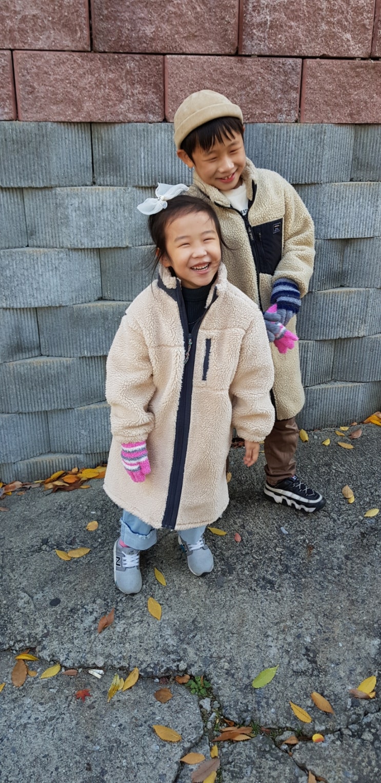 키즈 롱 후리스입은 남매♡