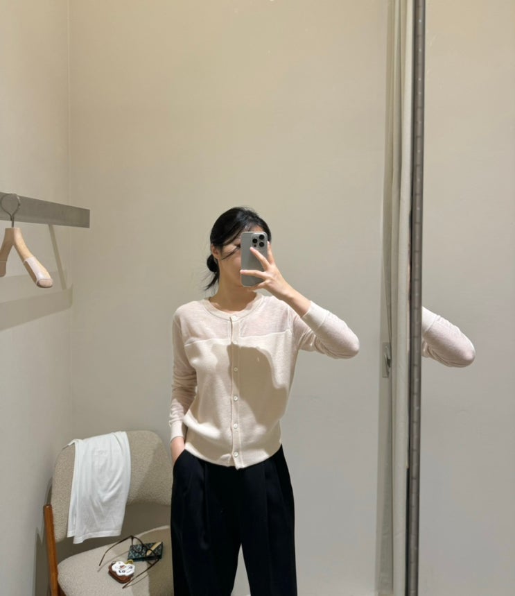 처음에 입어봤던 케이시 니트가 마음에 들어 아더 컬러, 파우더 블루도 입어봤어요 그리고 라이브로 봤을 ...