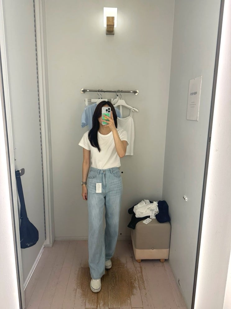 에잇세컨즈 바지 세미 와이드 워싱 데님 팬츠 착용샷
