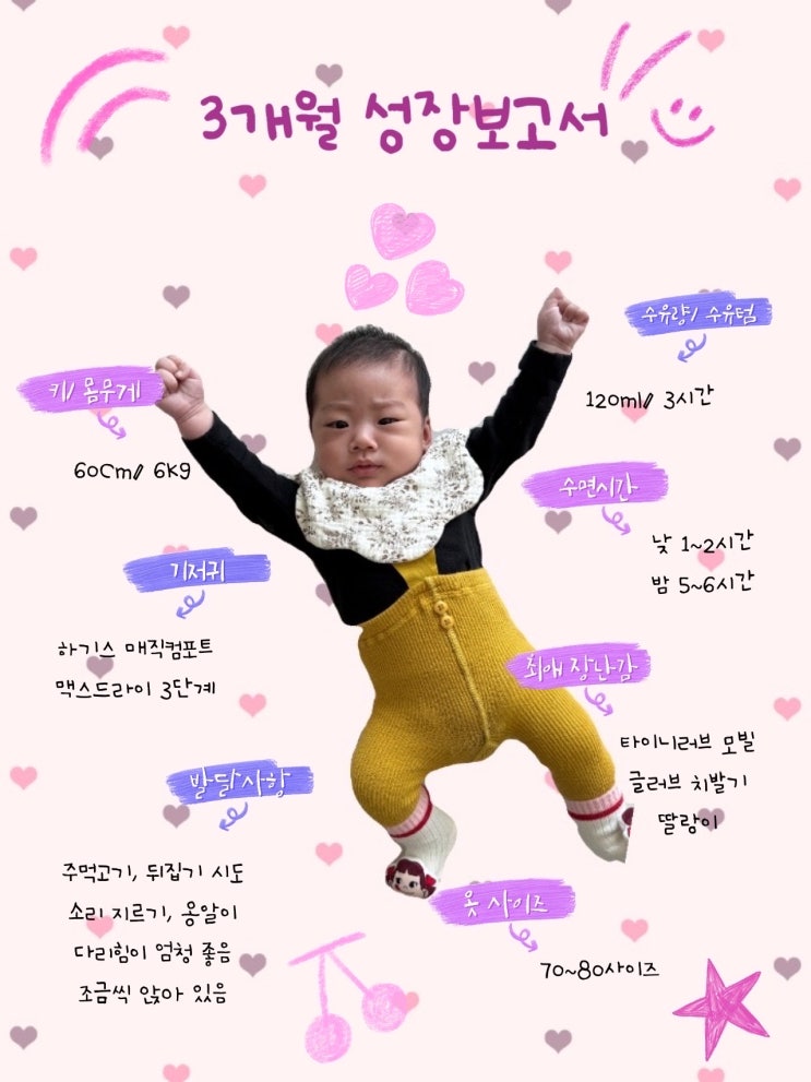 3개월 아기 발달 성장보고서 키 몸무게 수면시간 주먹고기