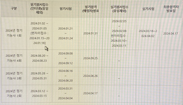 정보처리기능사필기 2024 시험일정과 준비과정 확인하고 가세요!