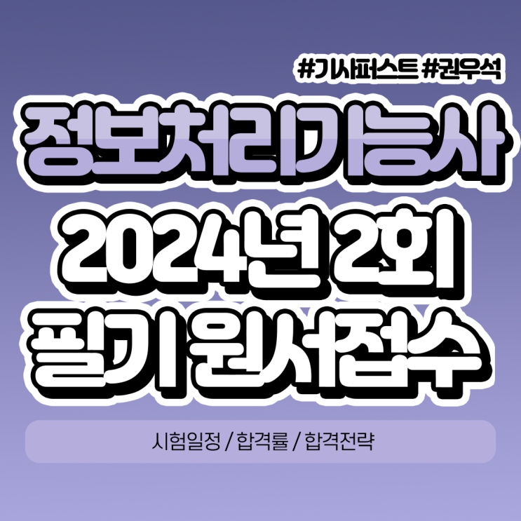 안녕하세요! 오늘은 2024 정보처리기능사, 시험일정과 응시자격 응시료와 합격률, 공부방법 등을 안내해 드...