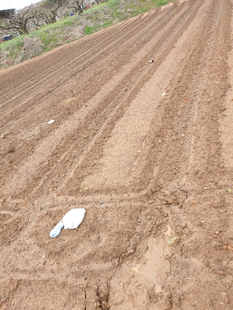 땅콩이 잘 자라고 있습니다. 자주감자도 잘 자라고 있습니다. 심지도 않은 토마토가 감자보다 더 커지고 있...