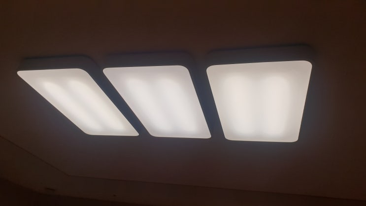 가운데가 기존 10년전 led 형광등 바꾼게 양쪽 사진에 다 담기지 않는다. 직렬연결이 답이다 병열로 했더니...