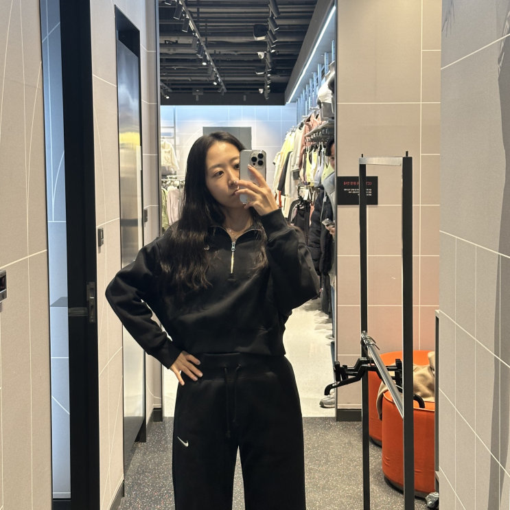 제니바지, 나이키 트레이닝 셋업 착용후기 | 나이키 피닉스 플리스 하프집 크롭 스웻셔츠, 와이드 레그 스웻팬츠