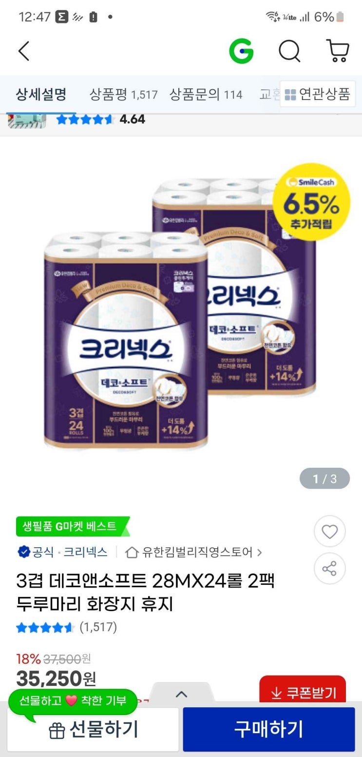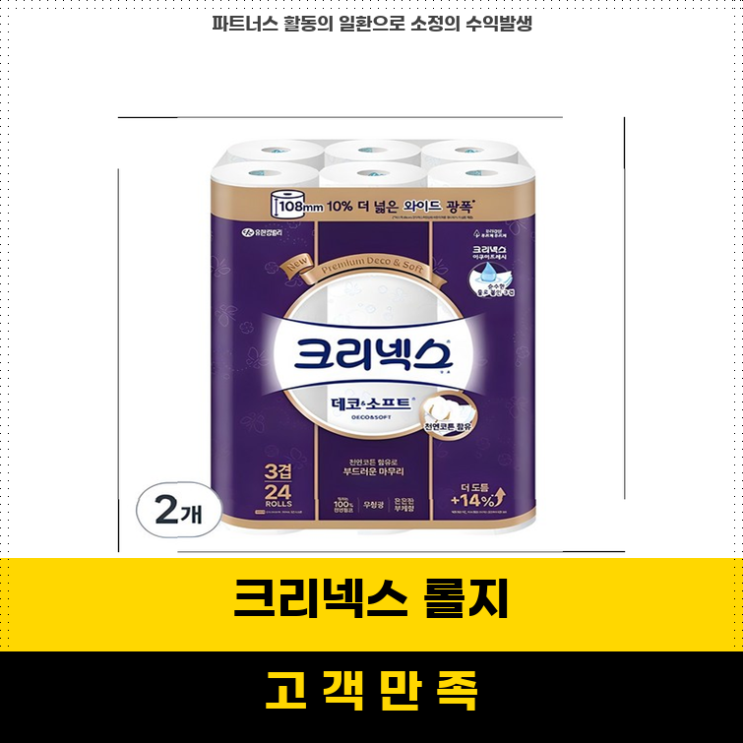쿠팡 최대할인 크리넥스 데코 앤 소프트 천연펄프 3겹 와이드 고급롤화장지로 생활의 질을 높이세요