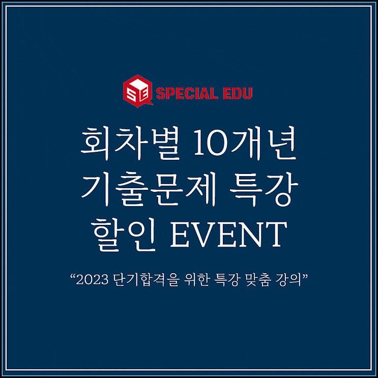 안녕하세요. 스페셜에듀입니다. 오늘은 24회~33회까지 10개년 회차별 기출특강 이벤트 안내를 해볼까 합니...