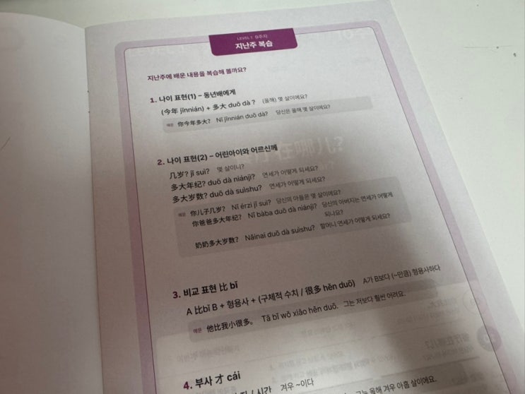 5주차 2번째 글 스타트 ! 가벼운학습지 중국어 환급챌린지 진행중! 근데 이번 챕터가 나이에 관련 된내용인...