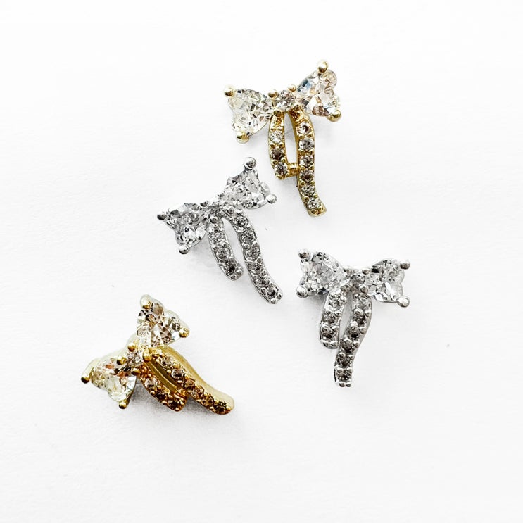 [대전네일재료/대전네일아이] 2024 블링 리본 반짝이 리본파츠 2종 1개입 (골드&실버)