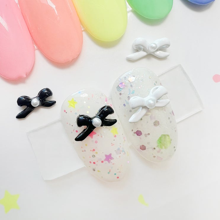[대전네일재료/대전네일아이] 2024 발레리나 진주 꼬리리본 리본파츠 5개입 (화이트&블랙)