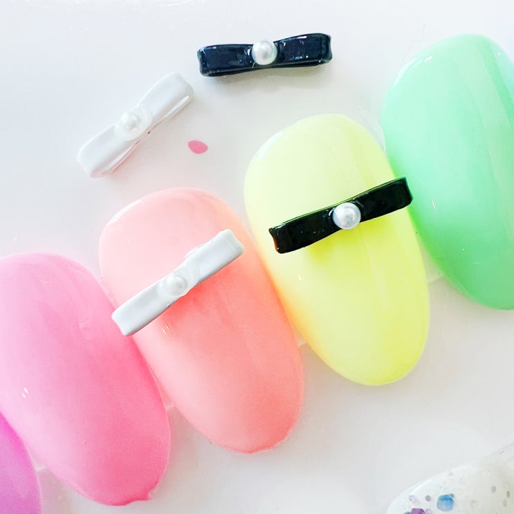 [대전네일재료/대전네일아이] 2024 발레리나 진주 매듭리본 리본네일파츠 5개입(화이트&블랙)