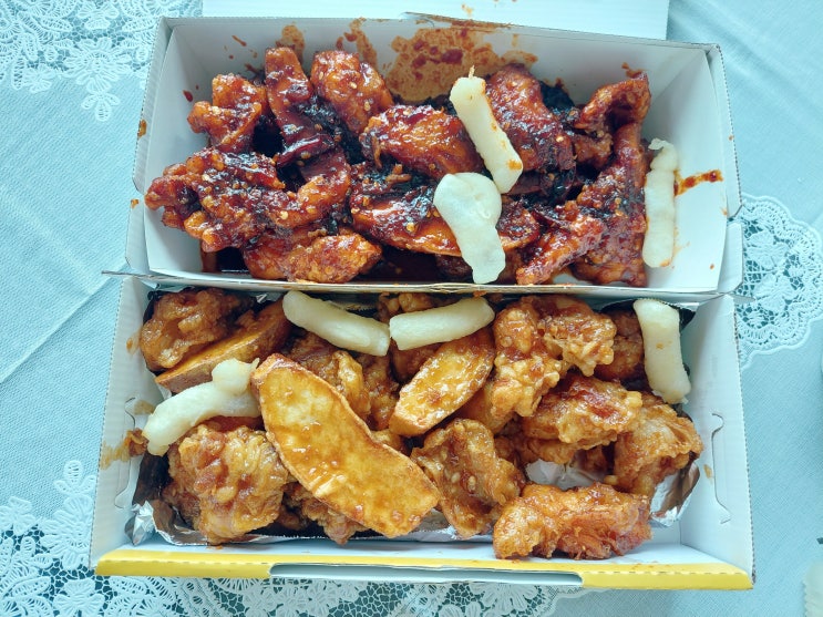 구미 옥계 맛집 동수네통닭 치킨 배달 고구마 떡도 들어있는 칠리양념