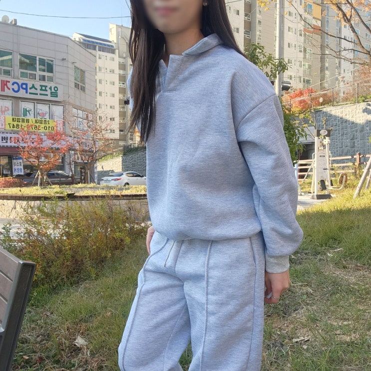 여성 겨울 기모트레이닝 세트 그레이 셋업ㅣ꾸안꾸 기모 상의 맨투맨 트레이닝 바지 팬츠 투피스ㅣ러닝 운동복