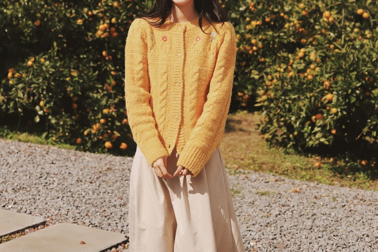 써스데이아일랜드 가디건 가을 제주 귤 카페 덴드리에서