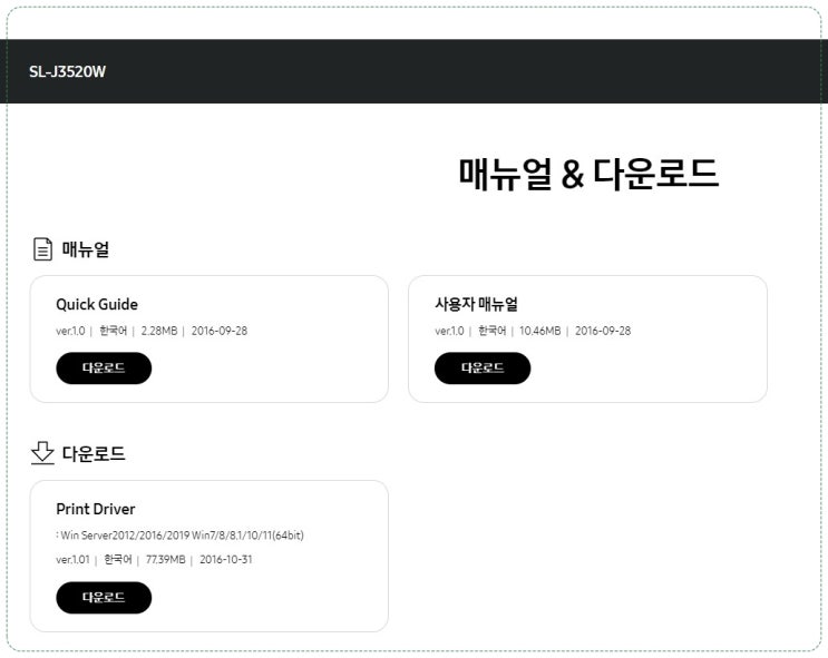 삼성 잉크젯 프린터 SL-J3520W 드라이버 다운로드 및 매뉴얼 다운로드