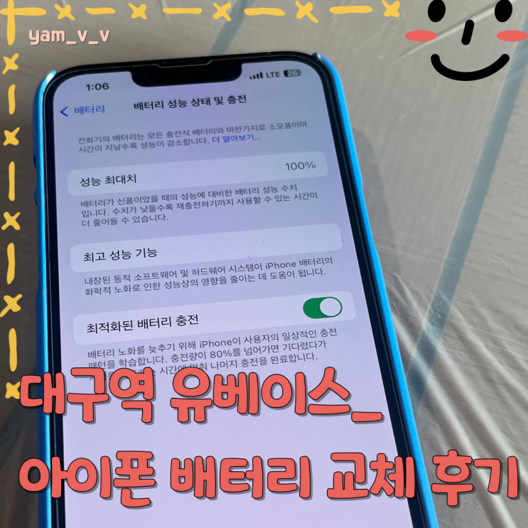 아이폰13프로 배터리 효율이 좋지 않아서 배터리 교체하고 왔어요. 대구 아이폰 배터리 교체: 유베이스 방...