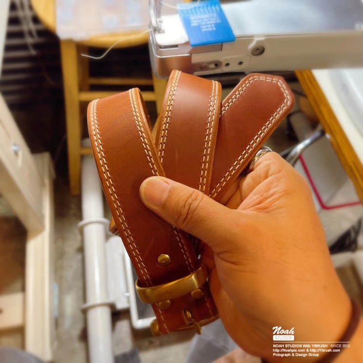4mm 두께의 이탈리아 베지터블 통가죽으로 제작한 청바지에 어울리는 커플 벨트 in 동탄 가죽공예 공방 노아스튜디오