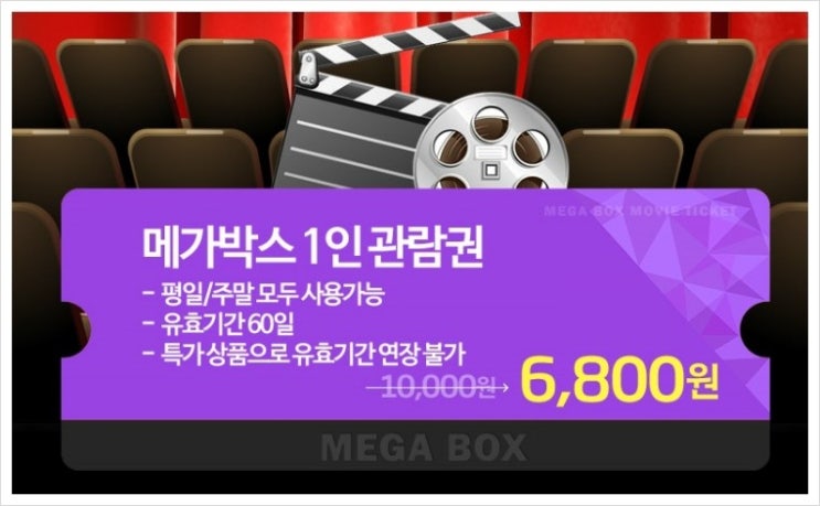 메가박스 할인 10월, 11월 이용 가능한 1인 관람권 카드, 통신사 할인 없이도 특가로 구매가능하며, ...