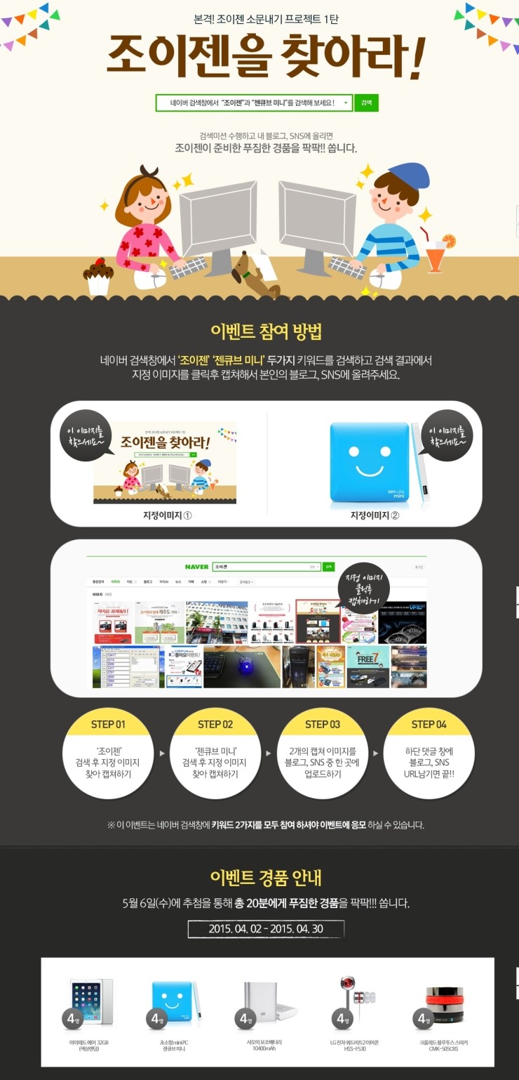 조이젠 홈페이지에서 4월 한달동안 조이젠을 찾아라! 네이버 검색 이벤트가 진행중입니다. 네이버 ...