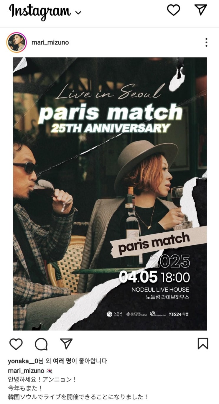 마리상 인스타에 올라온 내한일정! 작년에 이어 올해도 4월 따뜻할 때 온다 이번엔 노들섬 라이브하우스에...