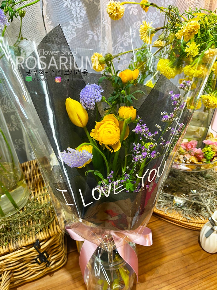 광주 첨단에 있는 예쁜 꽃집 로사리움입니다? 라넌큘러스가 메인인 미니 꽃다발이에요. 라넌큘러스와 함...