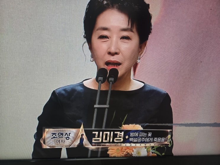 김미경, MBC 연기대상 여자 조연상 수상! '밤에 피는 꽃'과 '백설공주에게 죽음을'...