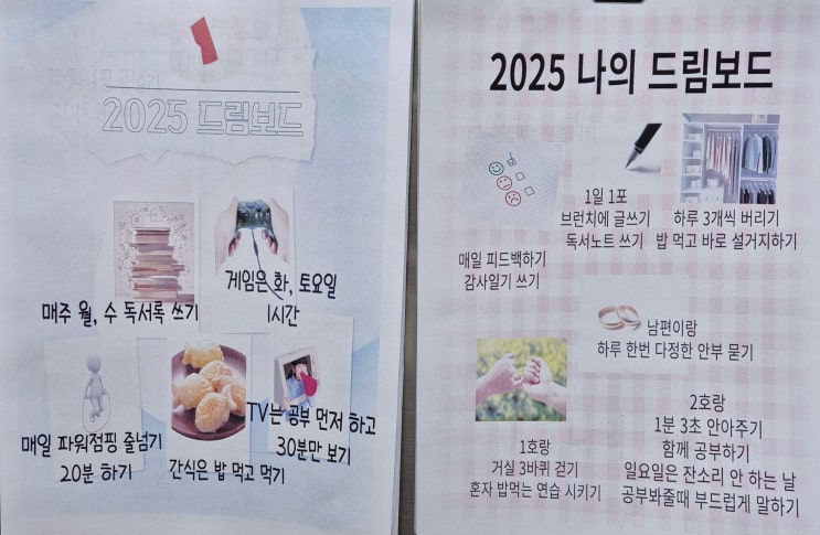 마음 수영을 함께하는 개미님이 작년 연말부터 드림보드를 만들어보라고 권하셨어요. 2호와 함께 드림 보드...