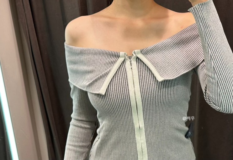 장원영 인형미 ootd = 오프숄더 니트