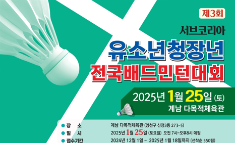 제3회 서브코리아 유소년 청장년 전국 배드민턴 대회 1. 대회 개요 대회명: 제3회 서브코리아 유소년 청장...