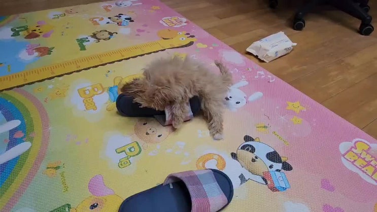 슬리퍼 가지고 노는 창순이 (5개월)