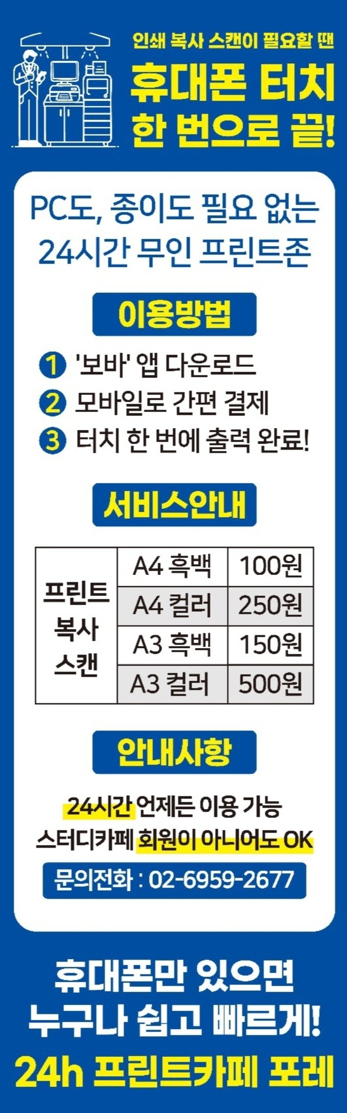 대치동에 24시간 이용이 가능한 프린트카페인 "스터디카페 포레" 스마트한 모바일 프린팅 서비스...