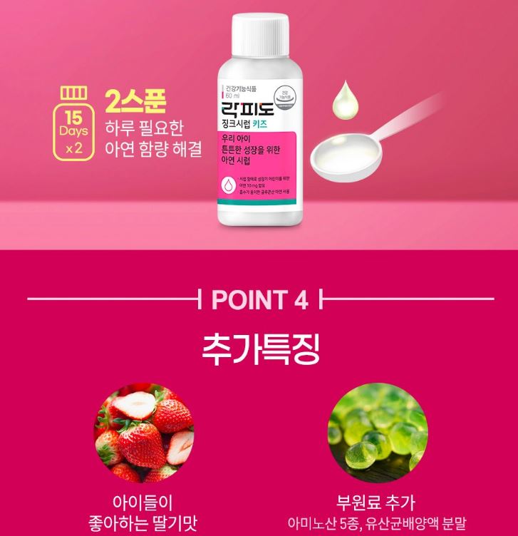 아이들의 튼튼한 성장과 면역력을 위한 필수 영양소 락피도 키즈 징크 시럽