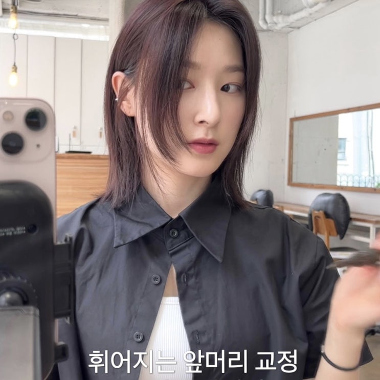 중단발 머리묶기 /셀프로 휘어지는 앞머리 고데기로 교정하기