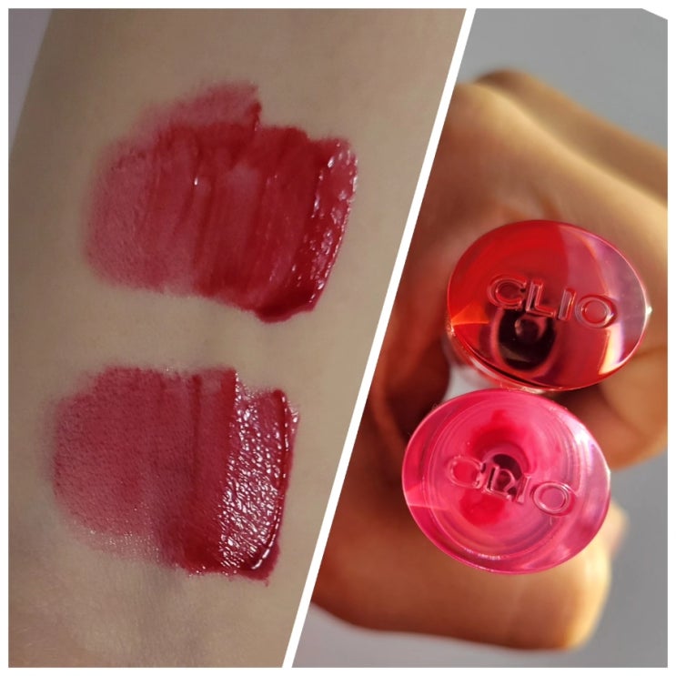 [내돈내산] 클리오 냥생역전 크리스탈 글램 틴트 16 럭셔리 모브 루비: 블러쉬드 피치 비교 발색