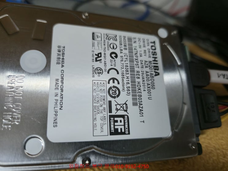 순천시 오천지구에서 잉**아 업체에서 의뢰해주신 도시바 외장하드 500GB 저장장치가 인식을 할 수가 없...
