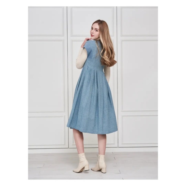 멋스러운 블루 헤링본 패턴이 고급스러운 블루 헤링본 슬리브리스 플리츠 원피스를 소개해드려요 유니크한 ...