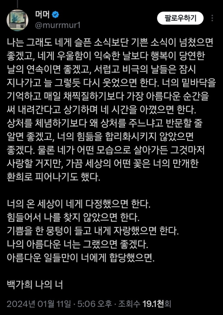 너의 온 세상이 네게 다정했으면 해