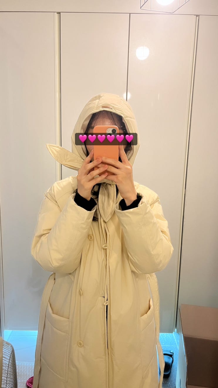 커버낫 패딩 내돈내산 후기 <우먼 후드 스카프 롱 다운 코트 버터> 피버님 착용