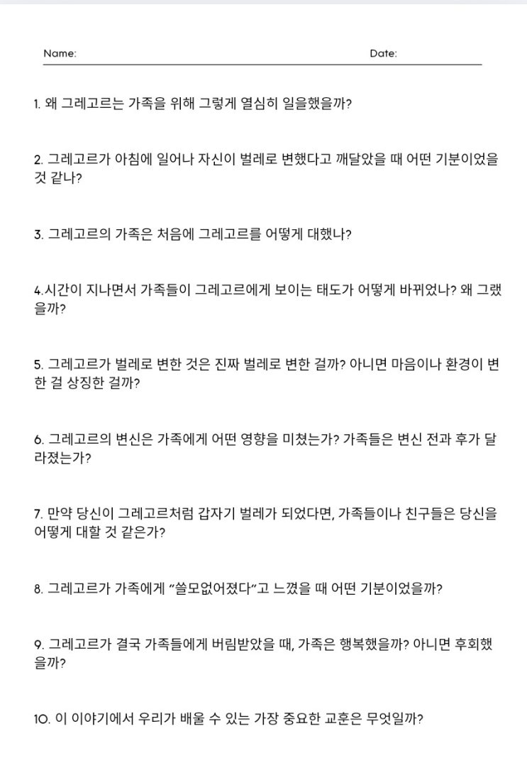 "고모! 제가 바퀴벌레로 변하면 어떻게.할거예요?" 초1학년인 조카의 질문이었습니다. ㅎㅎ 웃고...