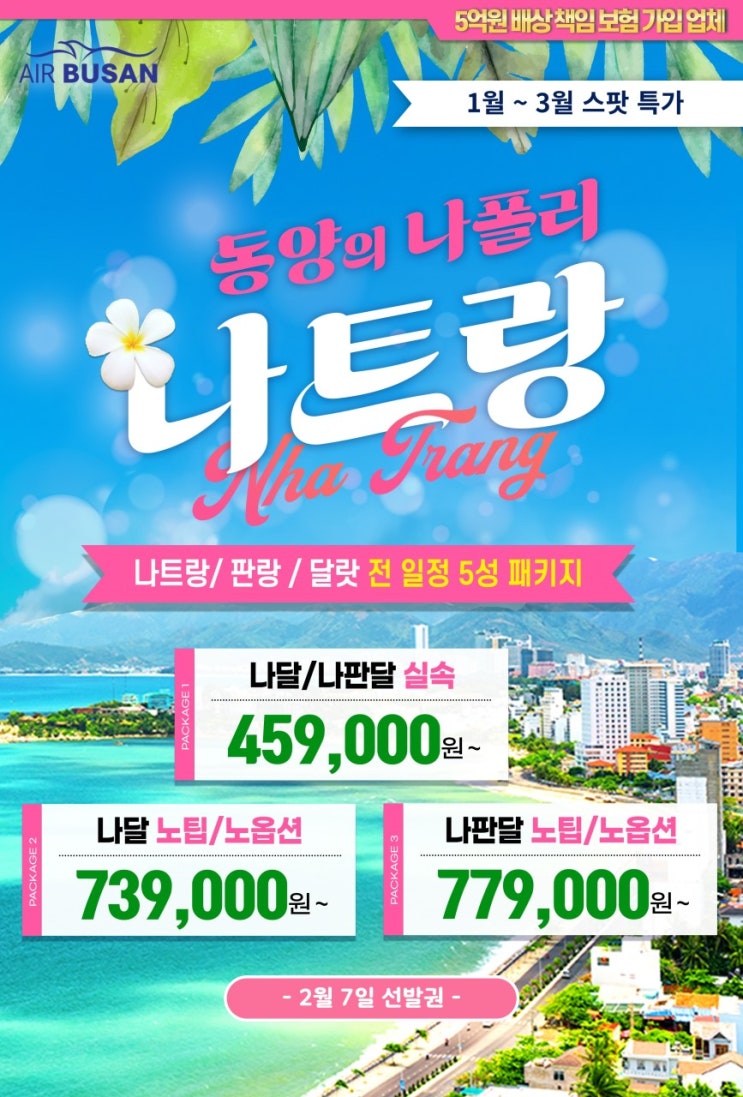 『부산출발해외여행추천?한국의 쌀쌀한 겨울을 벗어나 따뜻한나트랑에서 행복한 시간을 보내세요!』