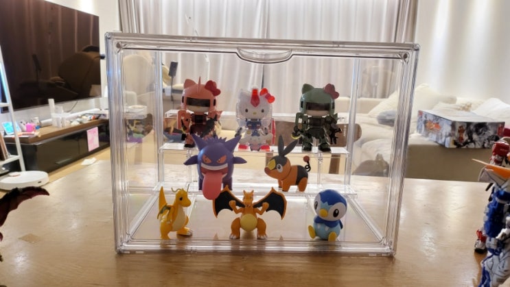 띵커보드 피규어 장식장에 산리오 키티 건담, 시나모롤 피규어, 포케프라 장식하기