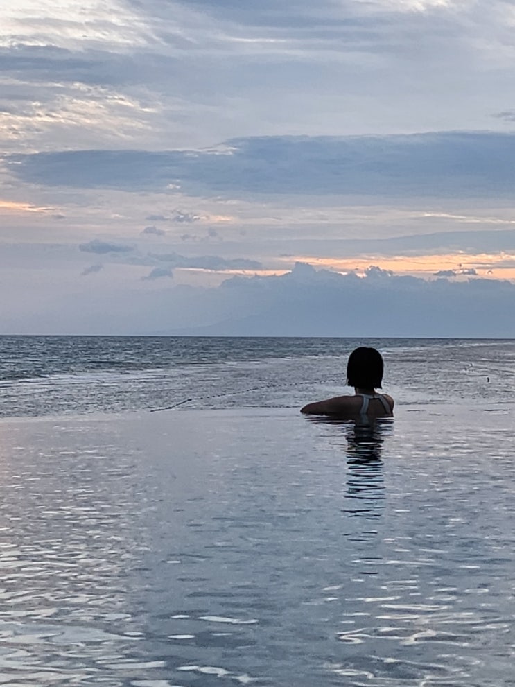 0831 아침에 일어나서 수영장 쪽 와서 바다 바라보기 바닷 바람 시원하구나 바다 색깔 투톤 신기하고 이쁘...