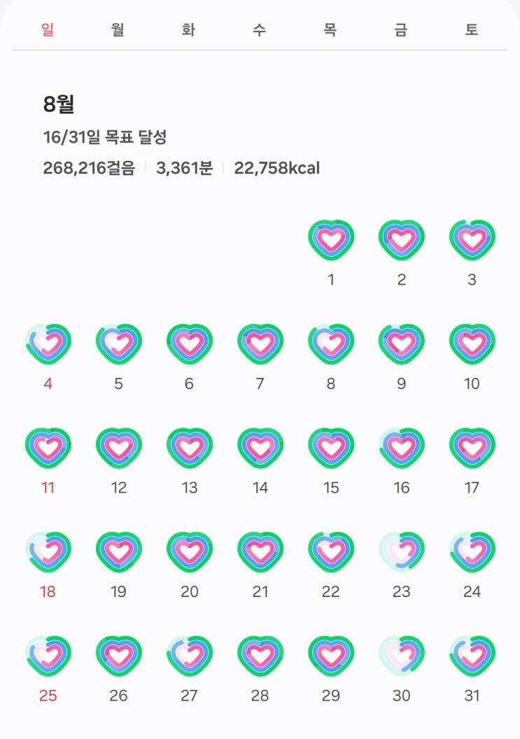7월엔 스페셜 포토덤프 기록하느라 일주일 운동 기록 열심히 했는데 한번 실패하니까 안하게 되더라.. 포스...
