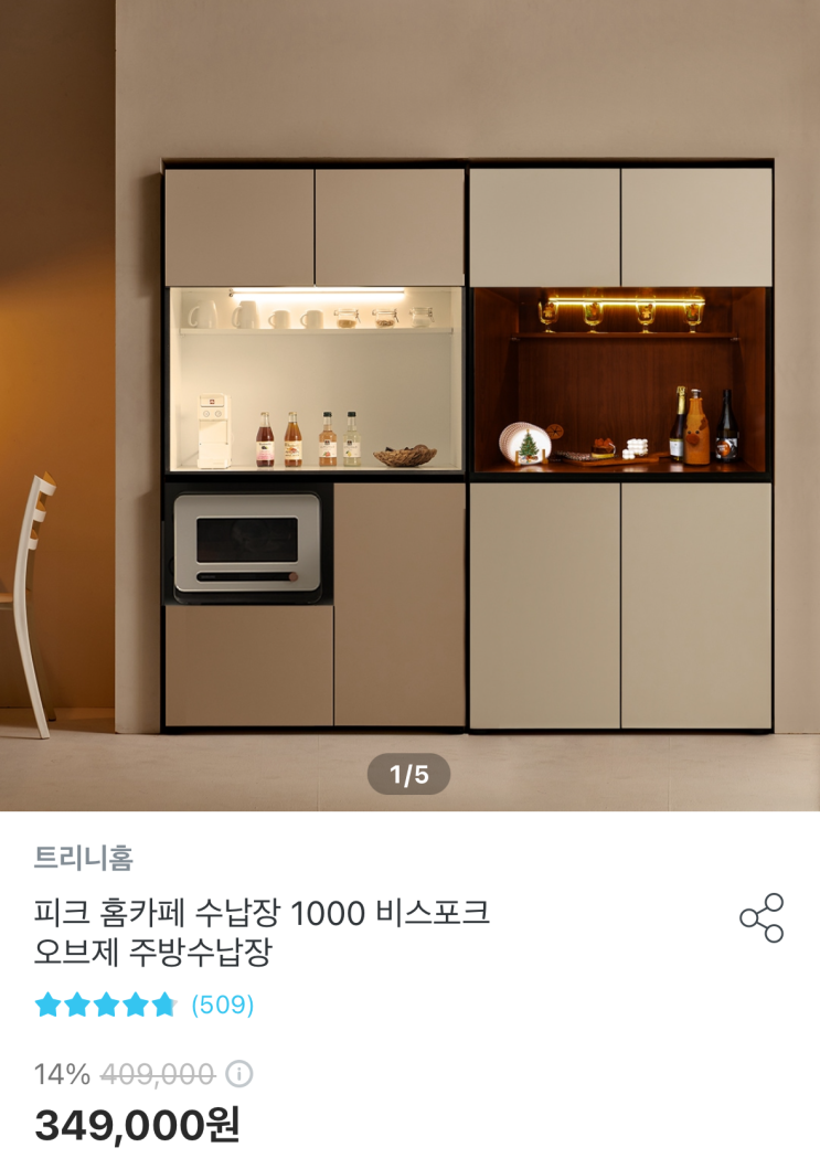 주방 홈바 꾸미기 ? 오늘의집 l 트리니홈 피크홈카페수납장 1000 비스포크 오브제 주방수납장