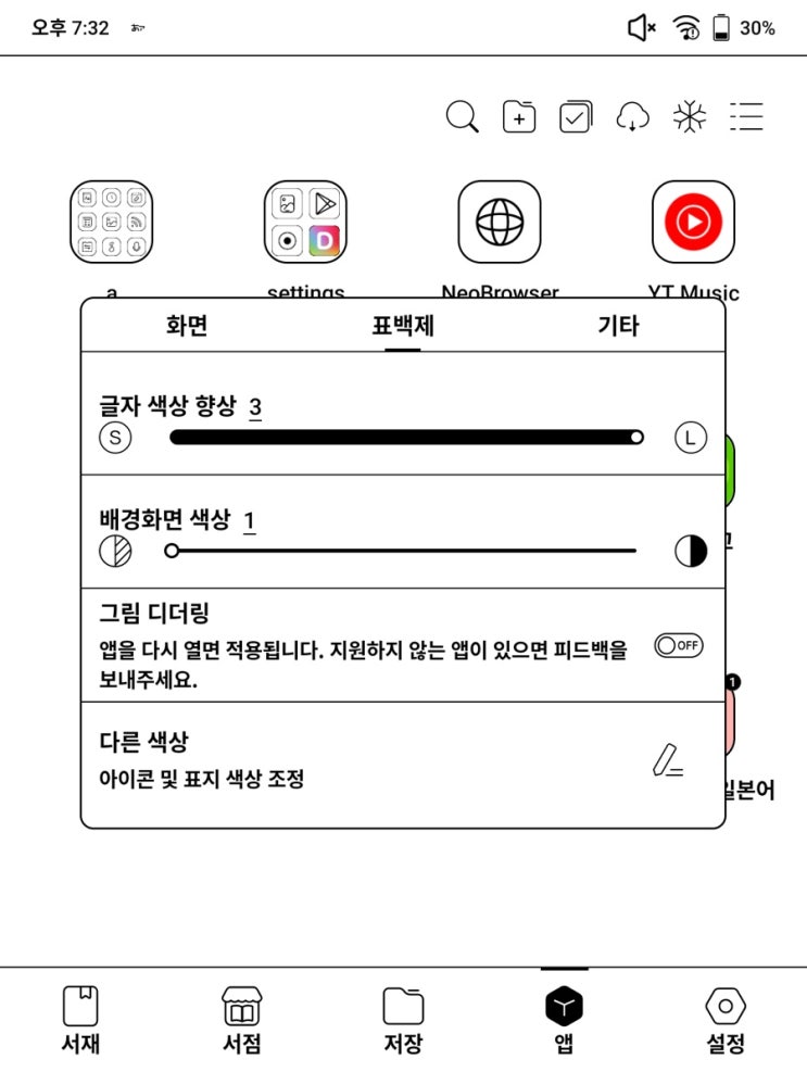ONIX 오닉스 페이지 리프3 이북리더기 설정