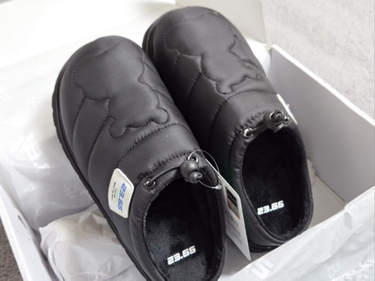 [23.65] 겨울용 패딩슬리퍼 추천, 폴카1 패딩 방한 슬리퍼 베어 유광블랙 후기