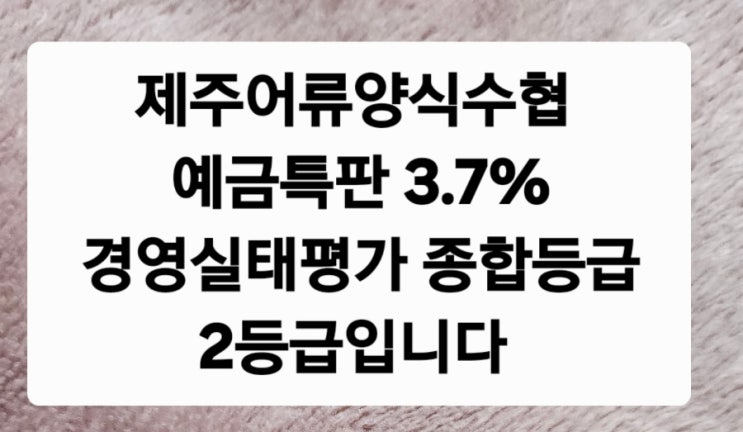 2등급 제주어류양식수협 예금특판 3.7% 가입가능한 3.8% 예금정보